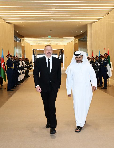 AZƏRTAC xəbər verir ki, Əbu-Dabinin Zayed Beynəlxalq Aeroportunda dövlətimizin başçısının şərəfinə fəxri qarovul dəstəsi düzülmüşdü.