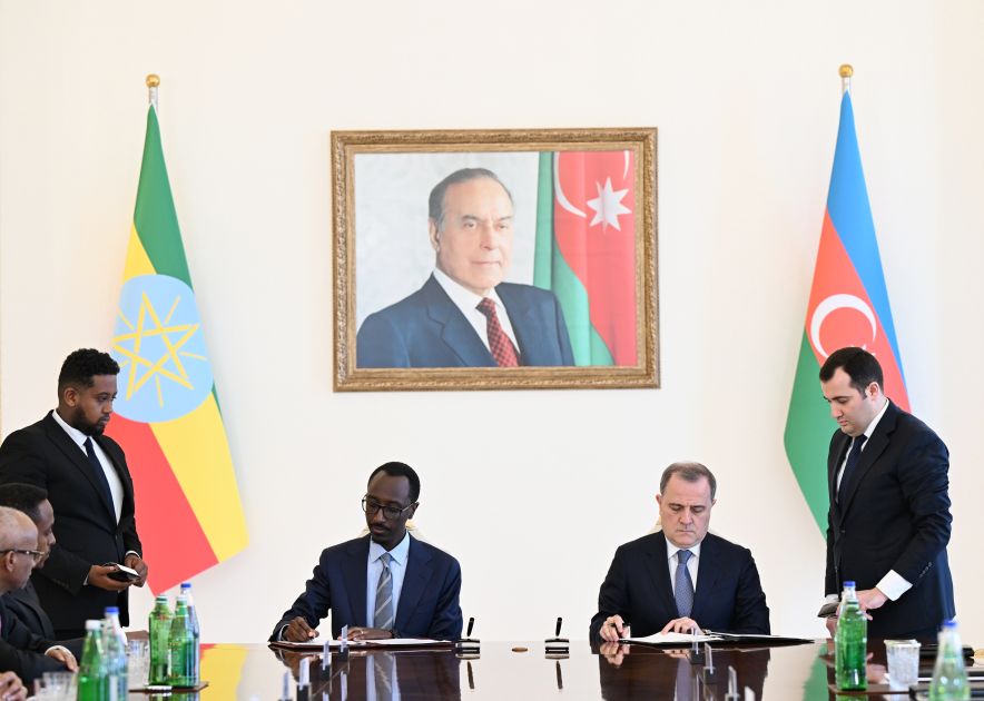 Daha sonra Azərbaycan Prezidenti İlham Əliyevin və Efiopiyanın Baş naziri Abiy Əhməd Əlinin iştirakı ilə Azərbaycanın xarici işlər naziri Ceyhun Bayramov və Efiopiyanın xarici işlər naziri Qedion Timoteos "Azərbaycan Respublikası ilə Efiopiya Federativ Demokratik Respublikası Hökuməti arasında müdafiə sahəsində əməkdaşlıq haqqında Saziş”i və “Birləşmiş Millətlər Təşkilatının İqlim Konfransının (COP32) otuz ikinci sessiyasının təşkilində əməkdaşlıq haqqında Anlaşma Memorandumu”nu imzaladılar.
