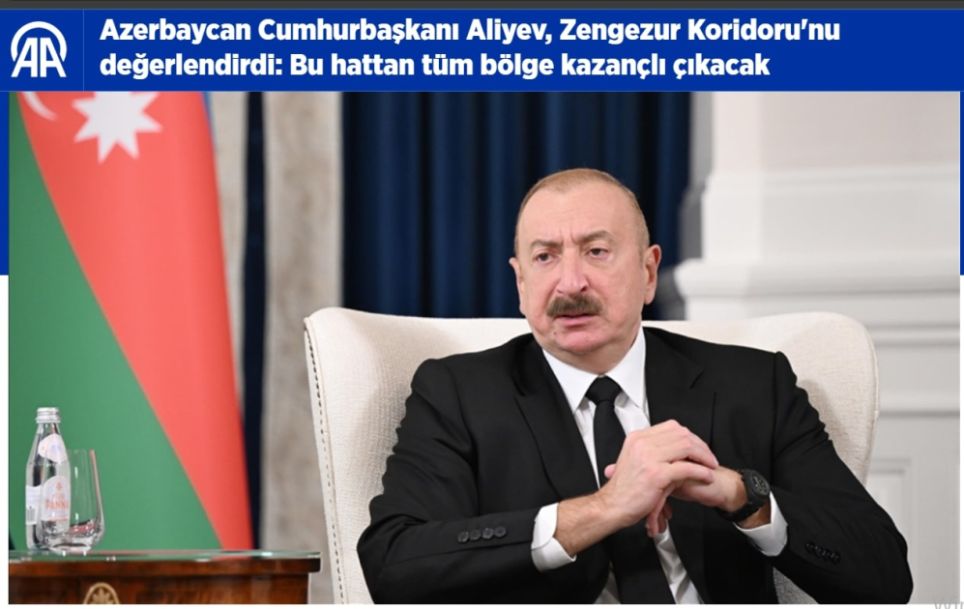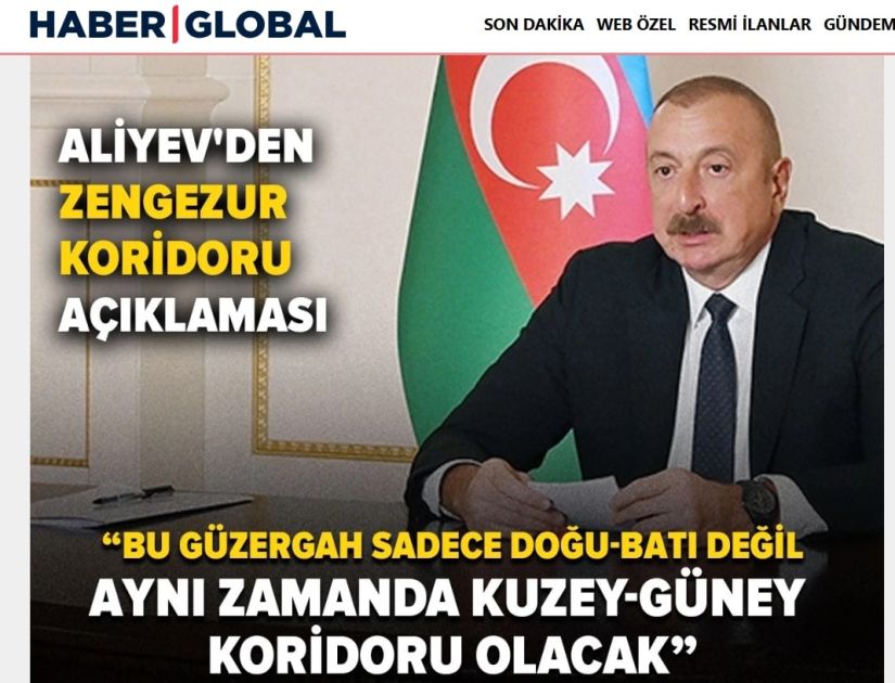 Türkiyənin aparıcı media orqanları, o cümlədən Anadolu agentliyi, “Haber Türk”, “Haber Global”, “TRT Avaz”, “Hürriyet”, “Yeni Şafak”, “Yirmidördtv”, “Ahaber”, “Haber.tr”, “Haber7”, “Ekonomim”, “Yeni Akit” və digər nəşrləri əsas diqqəti xüsusilə Azərbaycan Prezidentinin Zəngəzur dəhlizinin açılması, Suriya ilə İsrail arasında gərginliyin aradan qaldırılması, Türkiyənin qlobal arenada tutduğu mövqe ilə bağlı fikirlərinə yönəldib. Xəbərlərdə Prezident İlham Əliyevin Zəngəzur dəhlizinin bütün region üçün əhəmiyyəti ilə bağlı mövqeyi çoxmilyonlu auditoriyanın diqqətinə çatdırılıb. Dövlətimizin başçısının “Zəngəzur dəhlizi təkcə Şərq-Qərb nəqliyyat dəhlizi deyil, həm də Şimal-Cənub nəqliyyat dəhlizi olacaq” fikrinə xüsusi yer verilib. Qardaş ölkə mətbuatı, həmçinin Azərbaycan Prezidentinin qlobal gündəmdəki digər aktual məsələlər, o cümlədən Yaxın Şərqdəki proseslərlə bağlı fikirlərini də diqqətə çatdırıb.