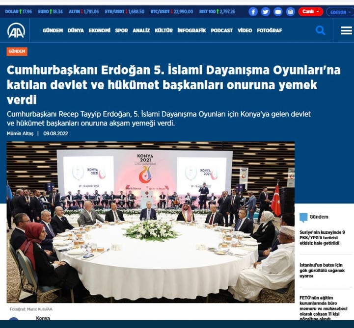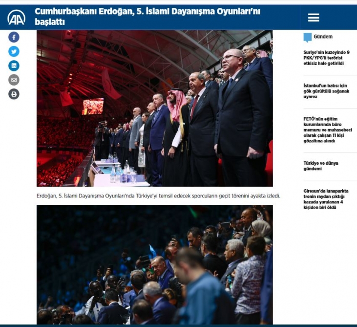 AZƏRTAC xəbər verir ki, Anadolu və İHA xəbər agentlikləri, “TRT Haber”, “Haber Türk”, Haber Global” telekanalları, “Sabah”, “Yeni şafak” və digər qəzetlər daxil olmaqla çox sayda media qurumları dövlətimizin başçısına göstərilən ali qonaqpərvərliyə, Azərbaycan və Türkiyə prezidentlərinin ikitərəfli görüşlərinə, Azərbaycan Prezidenti İlham Əliyevin və birinci xanım Mehriban Əliyevanın təntənəli açılışı olan V İslam Həmrəyliyi Oyunlarını izləmələrinə və səfər barədə digər mövzulara aid geniş məlumatlar yayıblar.