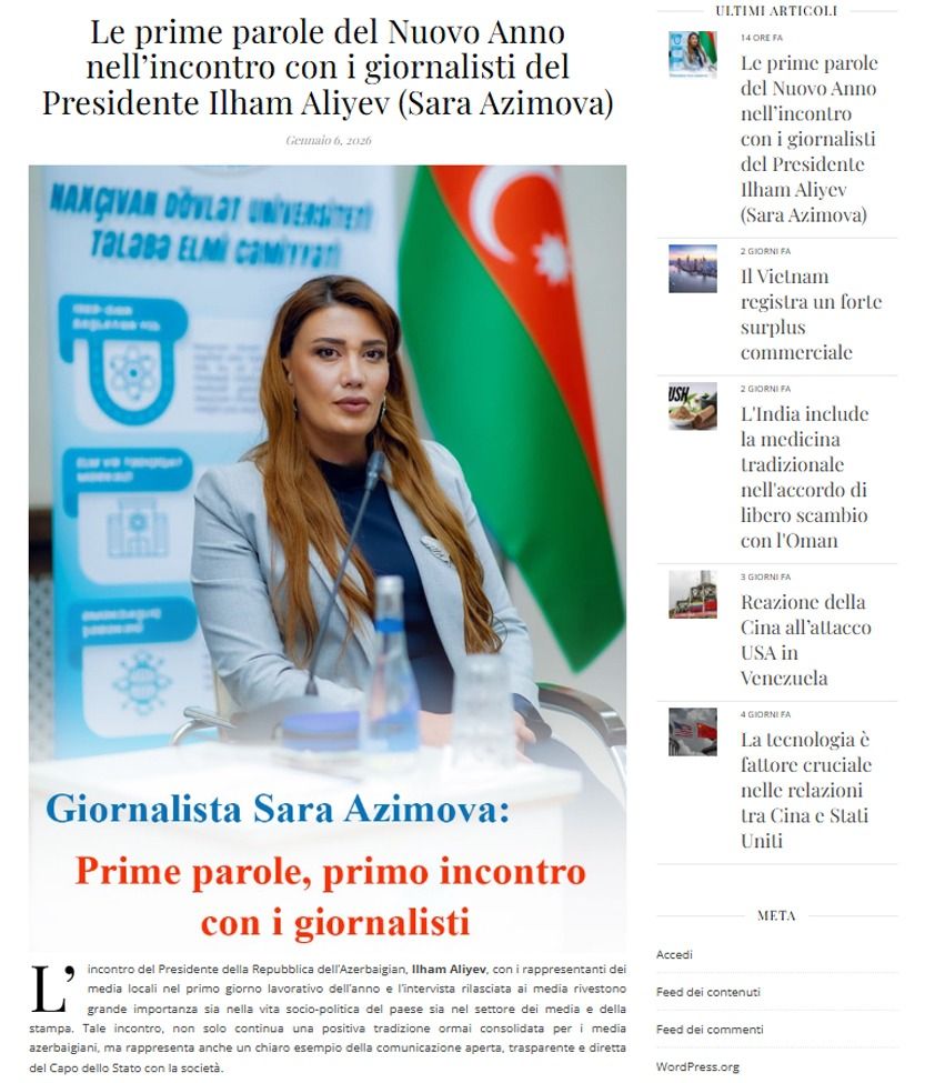 İtaliya mediası Prezident İlham Əliyevin yerli televiziya kanallarına müsahibəsindən bəhs edən məqalə yayımlayıb