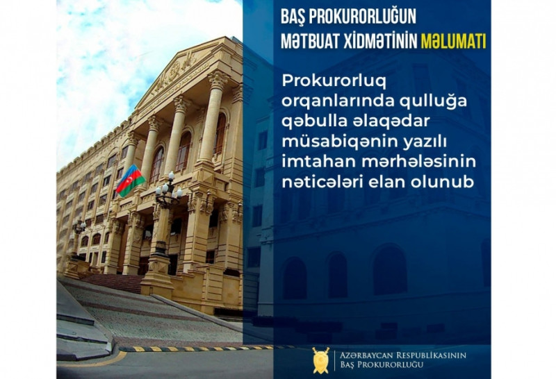 Azərbayсan Respublikası Baş Prokurorluğunun mətbuat xidmətindən AZƏRTAC-a verilən məlumata görə, yazılı imtahanda uğur qazanmış namizədlərin siyahısı Baş Prokurorluğun rəsmi internet səhifəsində (www.genprosecutor.gov.az) yerləşdirilib.