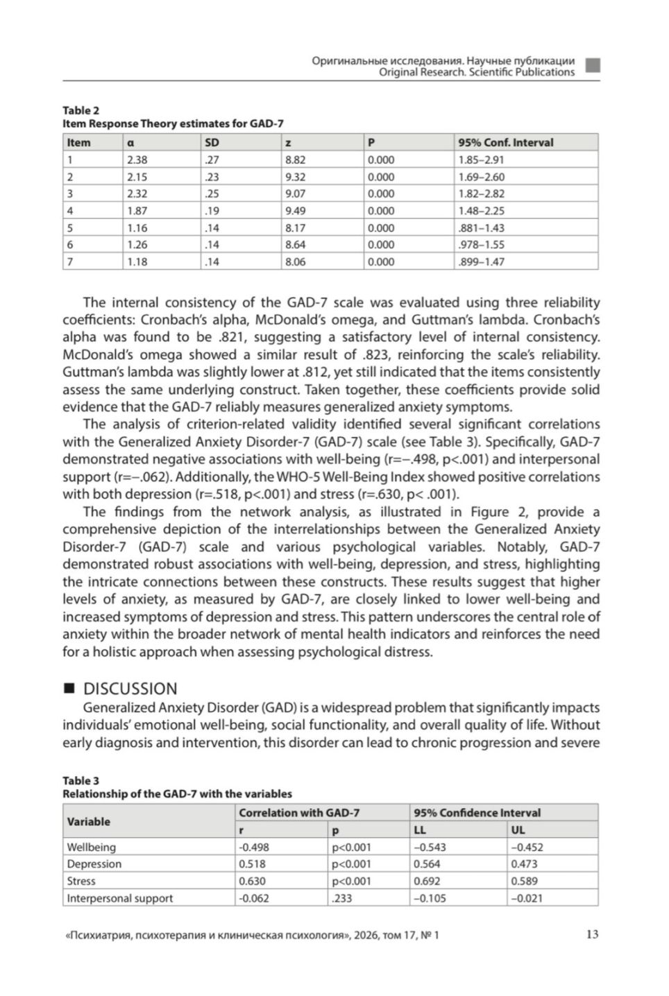 Yaşı 18-dən yuxarı olan 376 nəfərin (323 qadın, 53 kişi) iştirakı ilə aparılan və məlumatların onlayn sorğu vasitəsilə toplandığı araşdırma nəticəsində GAD-7 şkalasının Azərbaycan dilinə adaptasiyası uğurla həyata keçirilib, alətin psixometrik göstəricilərinin — etibarlılıq və validliyinin yüksək olduğu təsdiqlənib.