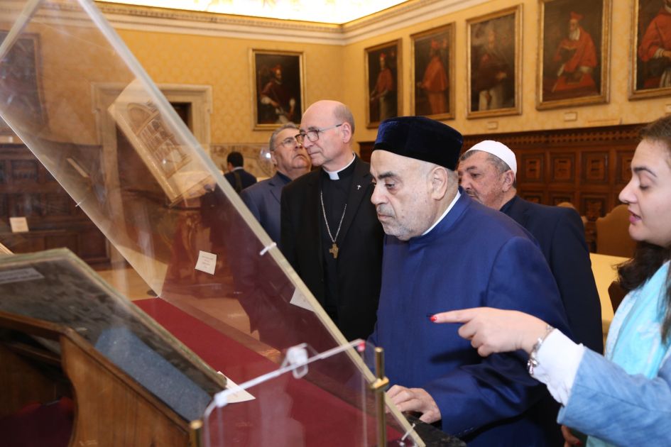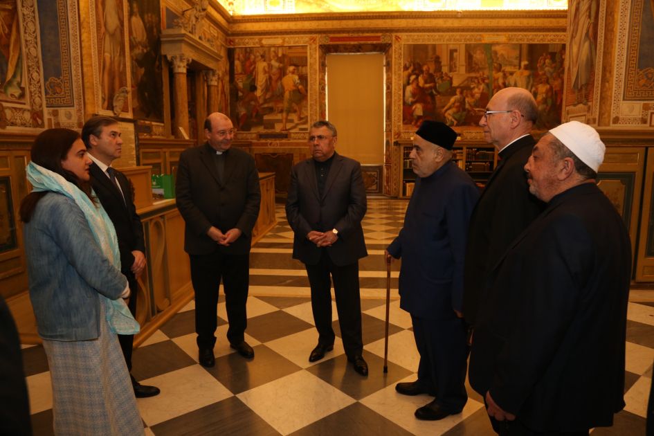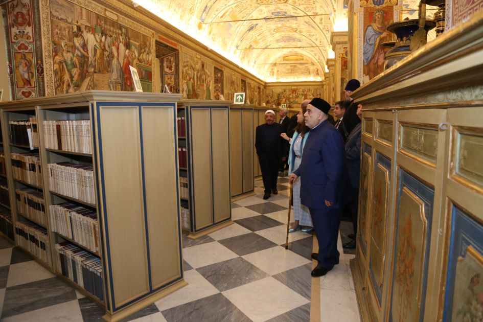 Vatikan Apostol Kitabxanasının prefekti Don Mauro Mantovani nümayəndə heyətinə məlumat verərək bildirib ki, dünyada tanınan ən qədim kitabxanalardan olan Vatikan Apostol Kitabxanasının əsası 1475-ci ildə qoyulub. Burada əsrlər boyu son dərəcə böyük dəyərə malik mətnlər - elm, mənəviyyat, ədəbiyyat və incəsənət xəzinələri toplanıb və qorunur. Kitabxanada tarixin müxtəlif dövrlərinə aid 80 min əlyazma, 2 milyon kitab və Vatikan sikkələri saxlanılır. Bu materiallar mədəniyyətin inkişafı, qorunması və təbliği üçün hər gün alimlərin istifadəsinə təqdim olunur. Bura ixtisaslaşmış kitabxana olduğu üçün, eləcə də burada qorunan materialların qədimliyi və məzmununa görə əhəmiyyəti nəzərə alınaraq, kitabxana yalnız ixtisaslı alimlərə, müəllimlərə, tədqiqatçılara və xüsusi hallarda isə tələbələrə açıqdır.