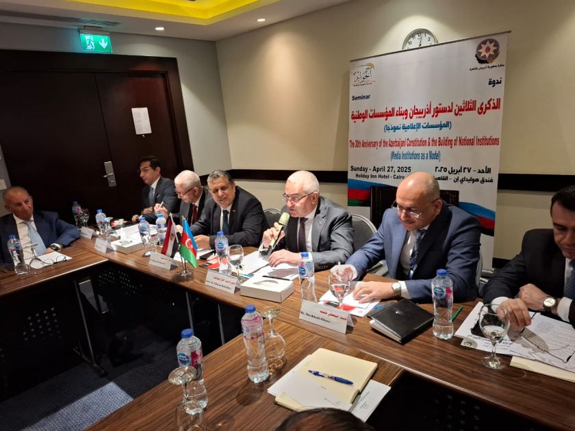 Qahirədə “Azərbaycan Konstitusiyasının qəbul edilməsinin 30 illiyi və milli institutların yaradılması (media institutları nümunəsində)” mövzusunda seminar keçirilib. Tədbir Azərbaycanın Qahirədəki səfirliyi və Misirin “Hivar” Siyasi və Media Araşdırmaları Mərkəzi tərəfindən təşkil edilib.