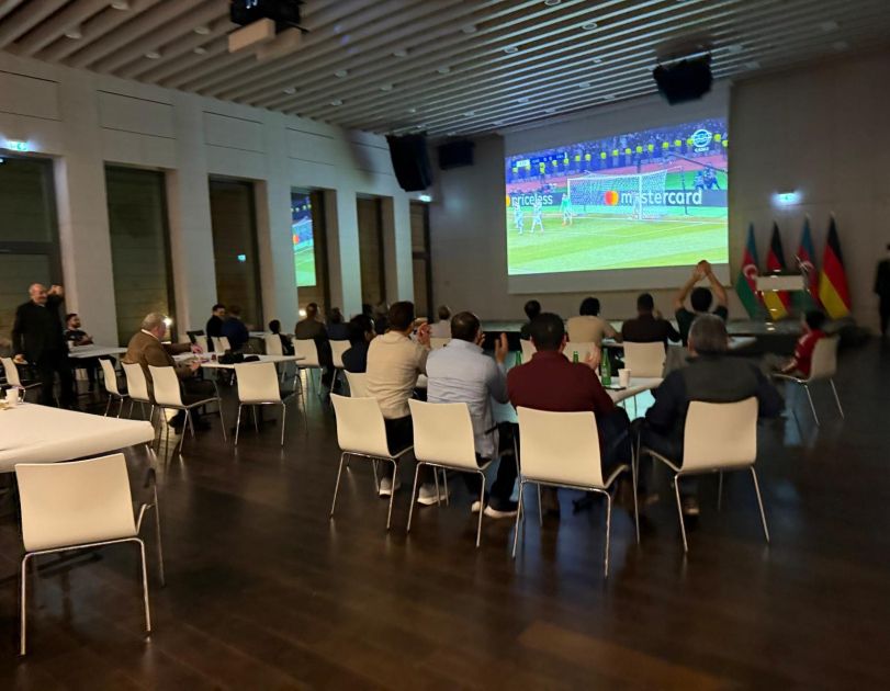 AZƏRTAC xəbər verir ki, Azərbaycanın Almaniyadakı səfirliyi tərəfindən Berlindəki Azərbaycan Mədəniyyət Mərkəzində oyuna kollektiv baxış təşkil olunub. Qarşılaşmaya baxış üçün mərkəzin zalında böyük monitor quraşdırılıb, lazımi texniki şərait yaradılıb.