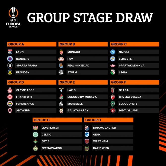 G qrupu: “Tottenhem” (İngiltərə), “Renn” (Fransa), “Vitess” (Niderland), “Mura” (Slovakiya);