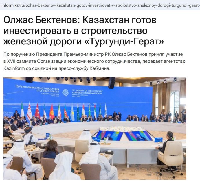 Yayımlarda Qazaxıstan hökumət başçısının Trans-Əfqanıstan dəmir yolunun regionun iqtisadi inkişafı üçün əhəmiyyətini vurğuladığı bildirilir. Oljas Bektenovun “Turqundi–Herat” dəmir yolu xəttinin tikintisinə Qazaxıstanın sərmayə yatırmağa hazır olduğunu bildirdiyi fikirlərə yer verilir.