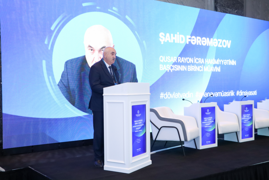Qusar Rayon İcra Hakimiyyəti başçısının birinci müavini Şahid Fərəməzov konfransın əhəmiyyətindən bəhs edərək, ölkəmizdə milli-mənəvi dəyərlərimizin inkişafı üçün həyata keçirilən işlərdən danışıb.