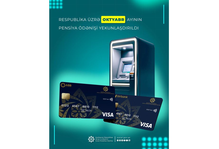 Bildirilib ki, oktyabrın 10-da Bakı və Sumqayıt şəhərləri, Abşeron rayonu və Naxçıvan Muxtar Respublikasında, bu gün isə ölkəmizin bölgələrində yaşayan şəxslərin oktyabr ayı üzrə pensiyaları, habelə güzəştli şərtlərlə təyin edilmiş pensiyalar ödənilib.