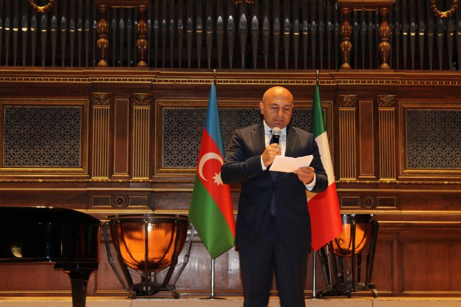 Azərbaycanın İtaliyadakı səfiri Rəşad Aslanov çıxışında Prezident İlham Əliyevin imzaladığı Sərəncama əsasən, 2009-cu ildən etibarən sentyabrın 18-nin Milli Musiqi Günü kimi qeyd olunduğunu xatırladıb. O, Üzeyir Hacıbəylinin 140 illik yubileyinin dövlət səviyyəsində geniş qeyd edildiyini vurğulayaraq bəstəkarın Azərbaycan milli musiqisinin banisi və Şərqdə ilk operanın müəllifi kimi mədəniyyət tariximizdə mühüm rol oynadığını diqqətə çatdırıb. Diplomat, həmçinin bəstəkarın Azərbaycanın Dövlət Himninin bəstələnməsində, milli konservatoriyanın yaradılmasında və musiqi təhsilinin inkişafında göstərdiyi misilsiz xidmətləri qeyd edib.