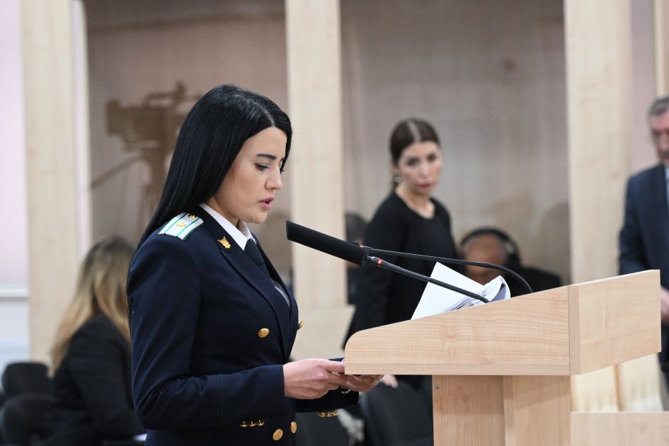 Fasilədən sonra məhkəmə prosesi dövlət ittihamını müdafiə edən prokurorlar tərəfindən cinayət işi üzrə ittiham aktının nəticəvi hissəsinin elanı ilə davam etdirilib.