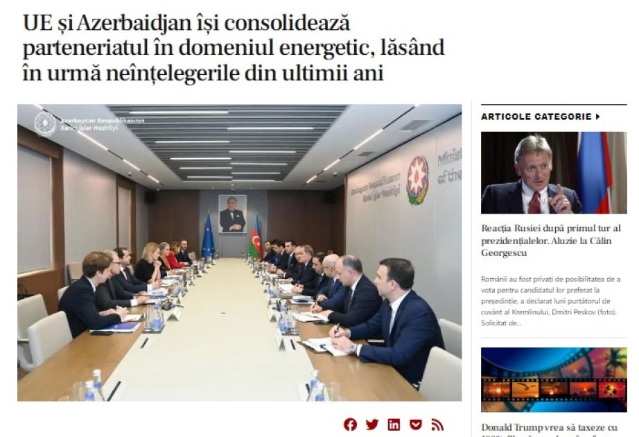 Rumıniya mediası: Aİ və Azərbaycan tərəfdaşlığı gücləndirir
