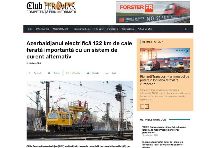 AZƏRTAC xəbər verir ki, bu barədə Rumıniyanın dəmir yolu üzrə ixtisaslaşmış “Club Feroviar” jurnalında yayımlanan məqalədə bildirilir.