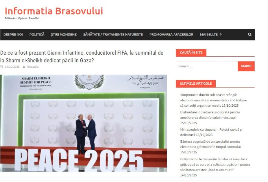 Rumıniyanın “Informatia Brasovului” nəşrində dərc olunmuş məqalənin müəllifi jurnalist Andrei Vasioiu yazır ki, Qəzzada sülhə həsr olunmuş sammitdə FIFA prezidenti Cianni Infantinonun iştirakı beynəlxalq ictimaiyyətin diqqətini çəkib.