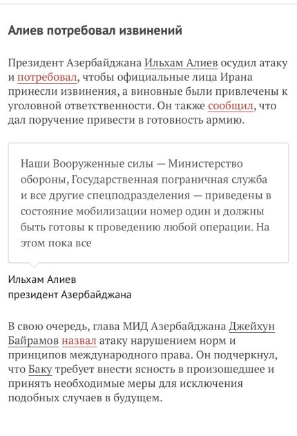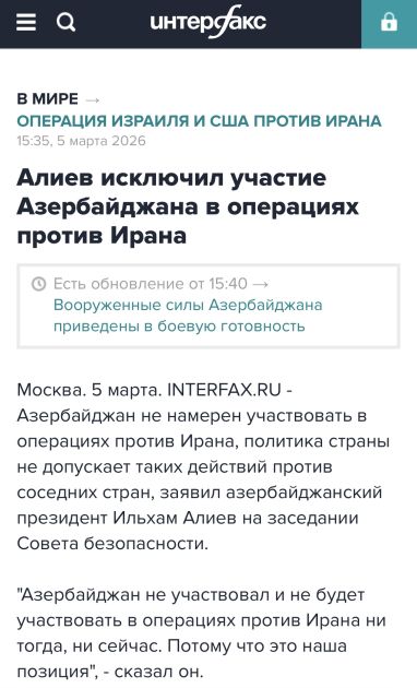 Eyni zamanda, Rusiya mediası Azərbaycan Prezidentinin “Azərbaycan nə o vaxt, nə də indi İrana qarşı əməliyyatlarda iştirak etməyib və etməyəcək” sözlərinə yer verib.