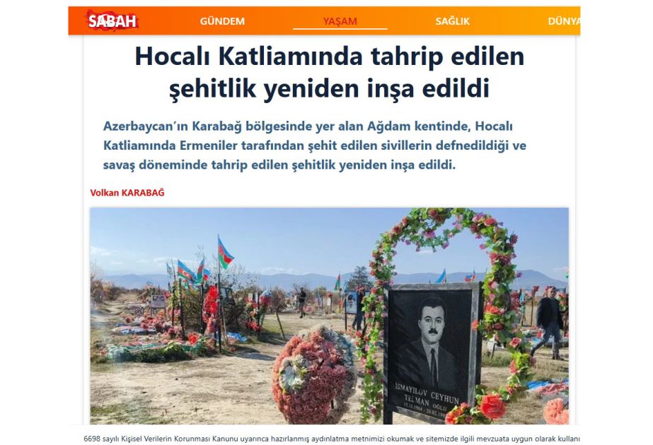 “Sabah” qəzeti: Azərbaycanda ermənilərin dağıtdığı Xocalı qurbanları qəbiristanlığı bərpa edilib