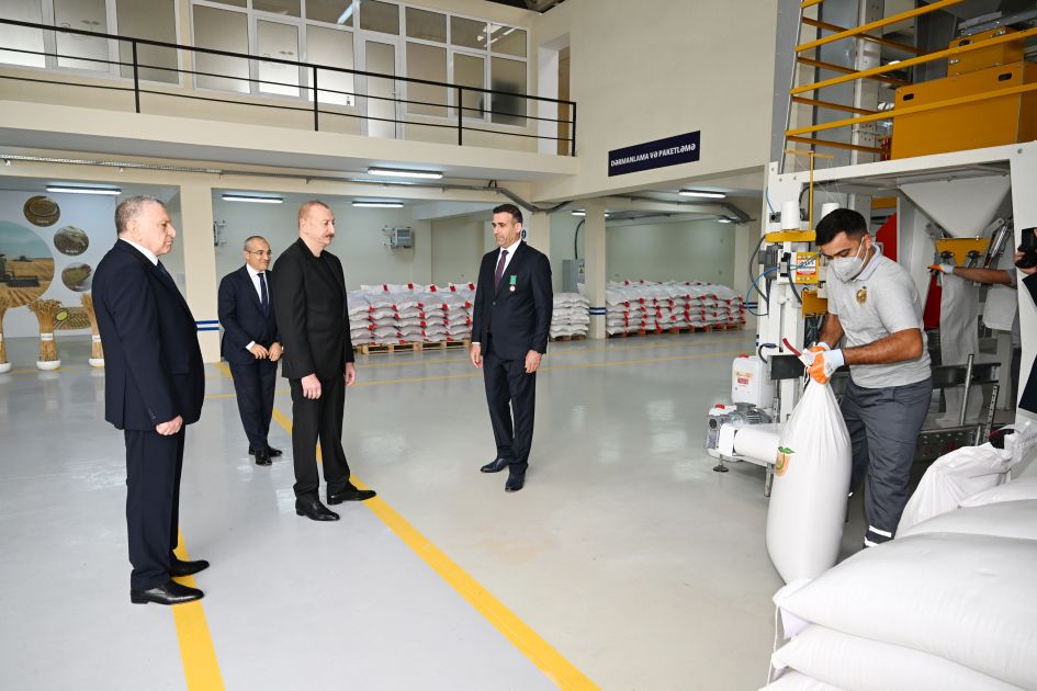 Azərbaycan Respublikasının Prezidenti İlham Əliyev oktyabrın 28-də Sabirabad Sənaye Məhəlləsində “Azera Toxumçuluq” Məhdud Məsuliyyətli Cəmiyyətinin (MMC) toxum istehsalı müəssisəsinin fəaliyyəti ilə tanış olub.