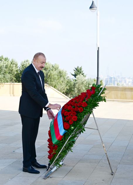 Dövlətimizin başçısı “Əbədi məşəl” abidəsinin önünə əklil qoydu.