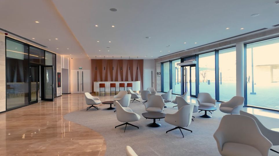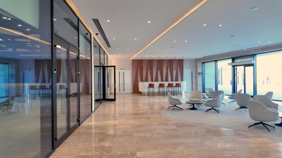 Kompleksin ərazisində yaşıllıq zonaları, yerüstü parklanma sahəsi mövcuddur. Mərkəzin binasının dam hissəsində Günəş panelləri yerləşdirilib.