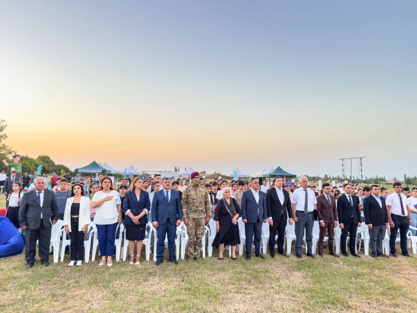 Səyyar Gənclər Xidmətinin Goranboydakı açılış mərasiminin rəsmi hissəsi Azərbaycanın Dövlət Himninin səsləndirilməsi və torpaqlarımızın azadlığı uğrunda şəhid olanların əziz xatirəsinin bir dəqiqəlik sükutla yad edilməsi ilə başlayıb.