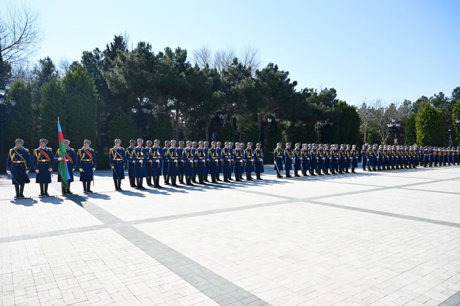 Fəxri qarovul dəstəsi hərbi marşın sədaları altında Azərbaycan Prezidenti İlham Əliyevin və Şimali Makedoniya Prezidenti Qordana Silyanovska-Davkovanın qarşısından keçdi.