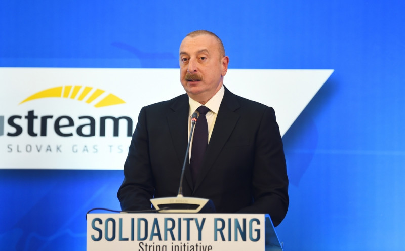 Mən, həmçinin Sizə bildirmək istərdim ki, təbii qaz Azərbaycanın Avropaya ixrac etdiyi yeganə enerji məhsulu deyil. İyirmi ildən artıqdır ki, biz xam nefti ixrac edən iri təchizatçı kimi etibarlı tərəfdaşıq. Neft-kimya məhsulları və elektrik enerjisi, həmçinin ixracımızın bir hissəsidir. Mən, həmçinin enerji inkişaf yolunu xatırlatdığına görə Slovakiyanın nazirinə təşəkkürümü bildirmək istəyirəm. Tam həqiqətdir ki, Azərbaycan müstəqilliyini bərpa etdikdən sonra üç ildən az müddətdə, 1994-cü ildə müqavilə imzaladı. Sonradan həmin müqavilə “XX əsrin müqaviləsi” adlandırıldı. Ölkəmiz ilk dəfə olaraq Xəzər dənizində nefti hasil və ixrac etmək məqsədilə xarici neft şirkətlərini dəvət etdi. Bir sözlə, bu gün biz XXI əsrin layihəsini həyata keçiririk və onun miqyası genişlənir.