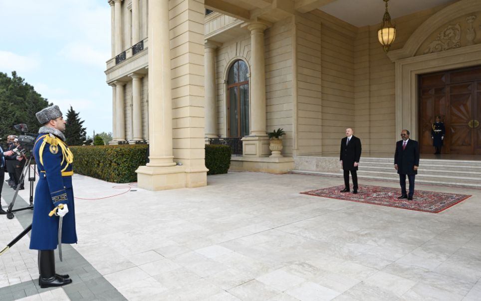 Azərbaycan Prezidenti İlham Əliyev Somali Prezidenti Hasan Şeyx Mahmudu qarşıladı.