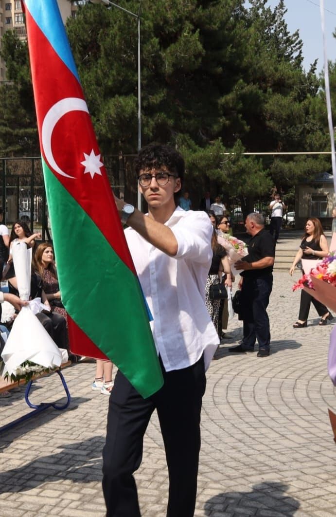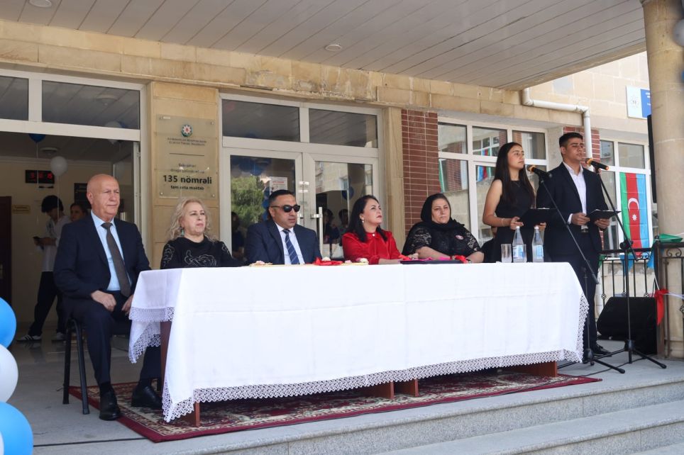 Məktəbin həyətində günün ruhunu əks etdirən xüsusi ab-hava var idi. Səhnə rəngarəng şarlarla bəzədilmiş, pəncərələrdən Azərbaycan bayrağı asılmışdı.