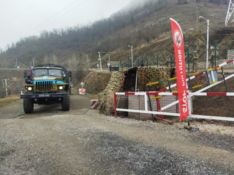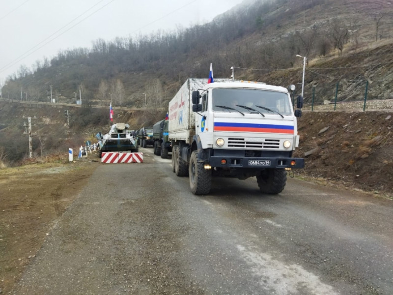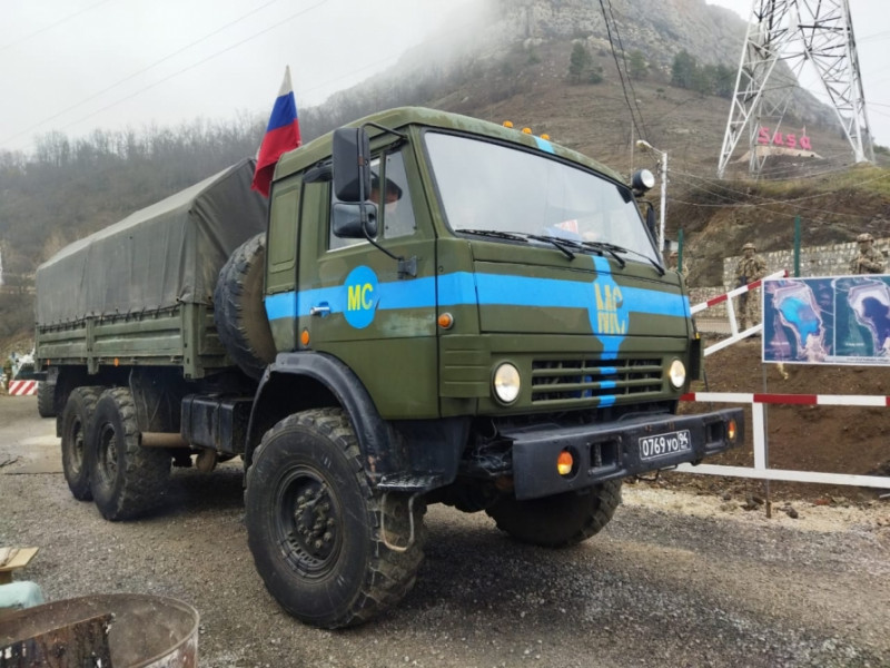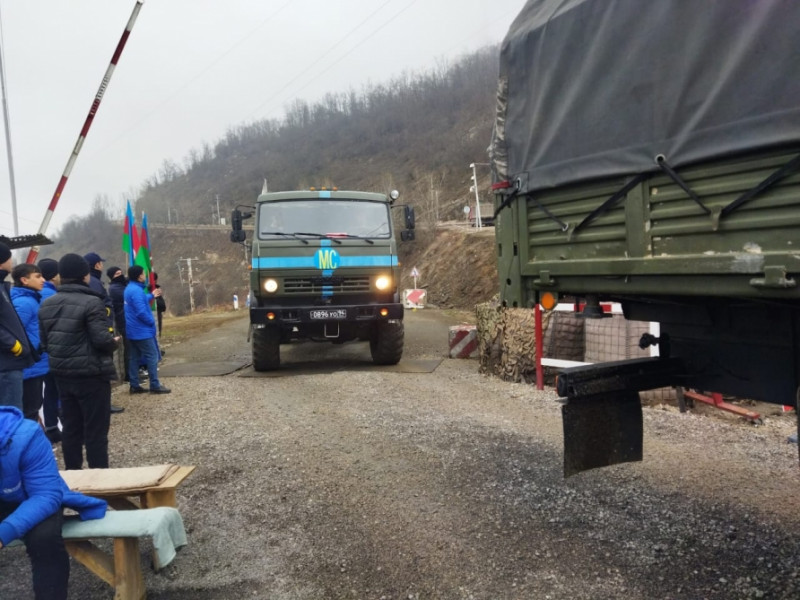 AZƏRTAC xəbər verir ki, Xankəndidən Laçın istiqamətinə doğru hərəkət edən Rusiya sülhməramlılarına məxsus altı təminat-təchizat və bir minik avtomobili aksiya ərazisindən maneəsiz keçib.