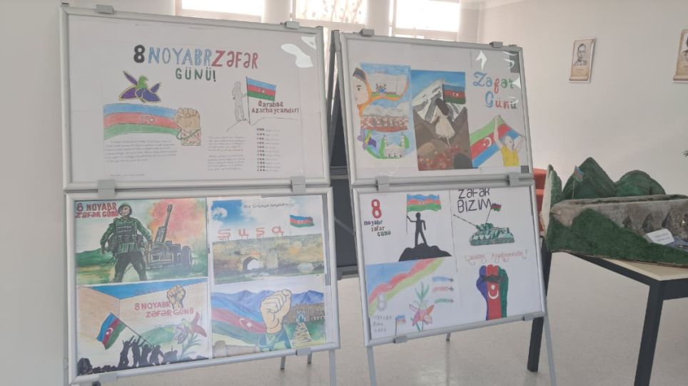 Məktəbin dəhlizində şagirdlərin Zəfər Günü mövzusunda hazırladıqları əl işləri və rəsm əsərləri sərgilənir. Tədbirdə məktəblilərin Zəfər Gününə həsr etdikləri şeir kompozisiyası, rəqs və musiqi nömrələri nümayiş olunacaq.