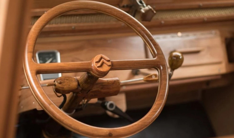 Dülgər Mişel Robilyarın alma, albalı, qoz və armud ağaclarından istifadə edərək hazırladığı taxta avtomobil hərracda nümayiş etdirilib. Klassik Citroen 2CV-dən sonra modelləşdirilən avtomobili parisli kolleksiyaçı 210 min avroya alıb. Auksionda, bundan əvvəlki avtomobilin 172 min avroya satıldığı bildirilib.