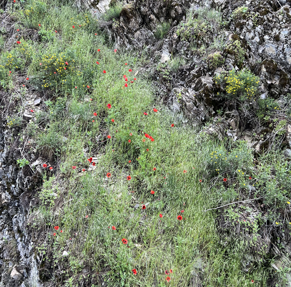 Yolboyu şəlaləyə qalxanda nadir, nəsli kəsilməkdə olan bitkiləri də gördük. Dağ lalələri qırmızı çalarları ilə torpağa, daşa bəzək verən xalıya bənzəyirdi. Qalxdığımız cığırda bir bitkiyə də rast gəldik. Yuxarısı bənövşəyi don geymiş çiçəklərlə örtülü idi. Çiçək bu dağların ən nadiri - erkək səhləb gülü idi.