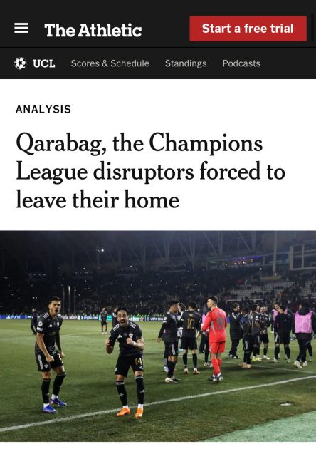 AZƏRTAC xəbər verir ki, “Çempionlar Liqasında gözlənilməz nəticələr göstərən və doğma şəhərini tərk etməyə məcbur olan “Qarabağ” başlıqlı yazıda komandanın bu mövsüm turnirin əsas hekayələrindən birinə çevrildiyi bildirilib.