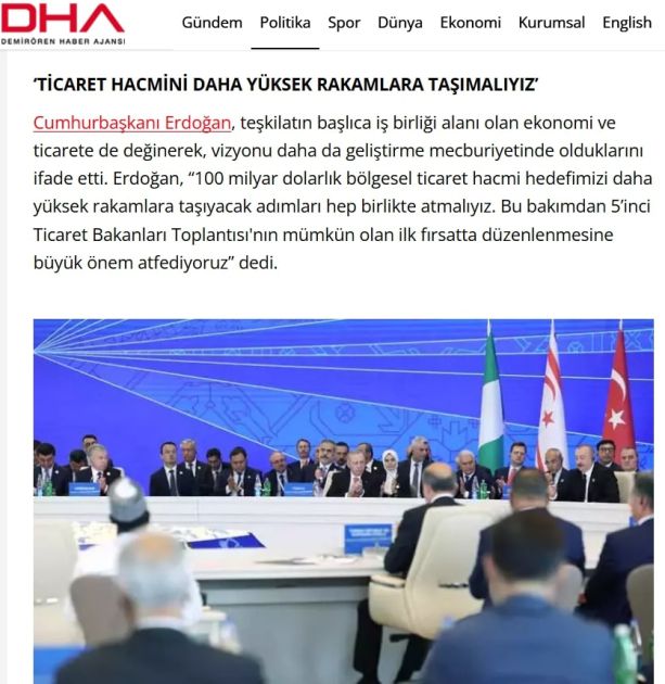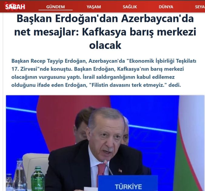Türkiyə və Şimali Kipr Türk Cümhuriyyətinin (ŞKTC) aparıcı telekanalları, informasiya agentlikləri, çap mediası və xəbər saytları İqtisadi Əməkdaşlıq Təşkilatının (ECO) Xankəndidə keçirilən 17-ci Zirvə görüşünü geniş işıqlandırıb.