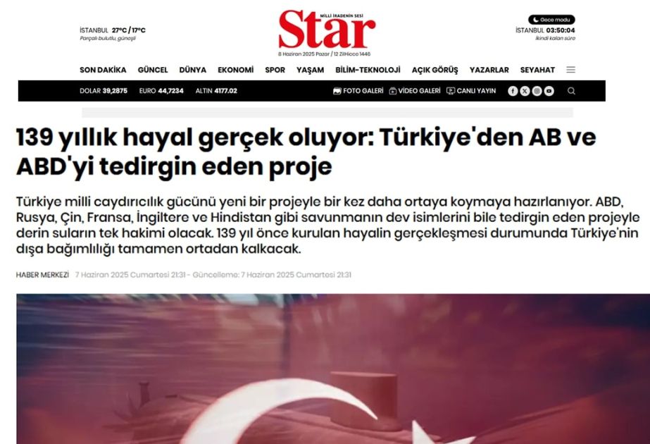 AZƏRTAC xəbər verir ki, bu barədə bazar günü Türkiyənin “STAR” qəzeti məlumat yayıb.
