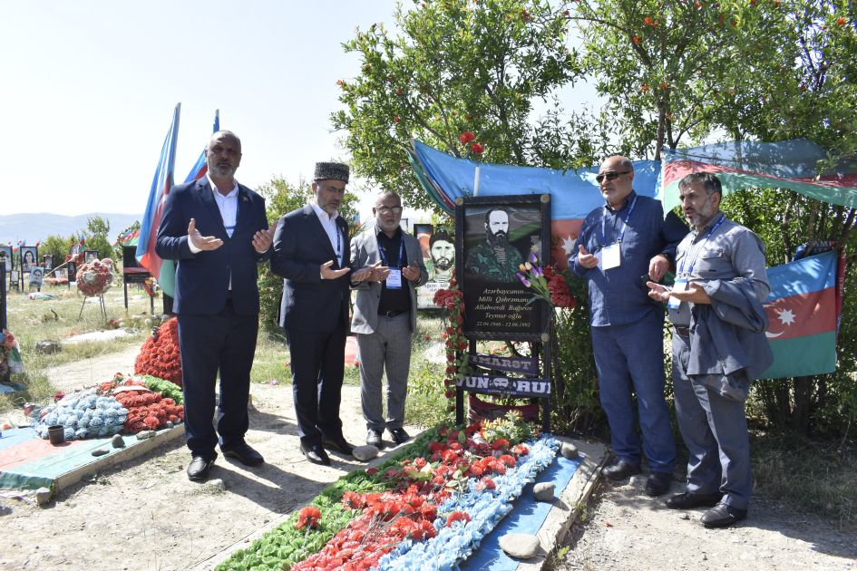 AZƏRTAC-ın bölgə müxbiri xəbər verir ki, nümayəndə heyəti əvvəlcə Ağdam şəhərindəki Şəhidlər xiyabanını ziyarət edib. Məlumat verilib ki, Ağdam Şəhidlər xiyabanında Birinci Qarabağ müharibəsində şəhid olan qəhrəman Vətən övladları, o cümlədən Xocalı soyqırımında öldürülən şəhər sakinlərinin bir hissəsi dəfn edilib. Ağdamda hər şeyi məhv edən erməni vandalları Şəhidlər xiyabanındakı qəbirləri də qazaraq dağıdıblar.