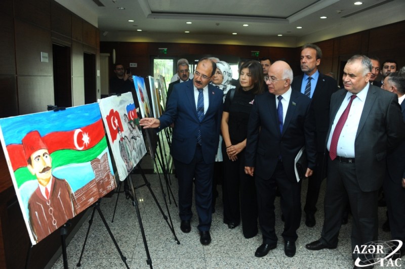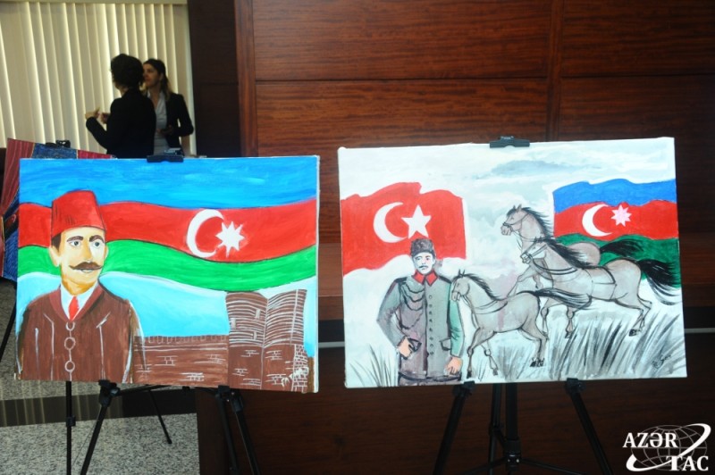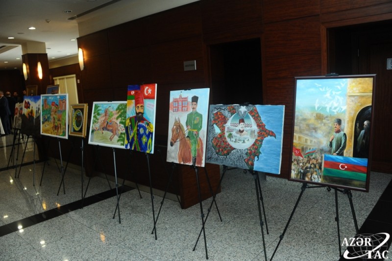 AZƏRTAC xəbər verir ki, tədbir iştirakçıları əvvəlcə Bakının Qafqaz İslam Ordusu tərəfindən işğaldan azad olunmasını əks etdirən rəsm sərgisi ilə tanış olublar.
