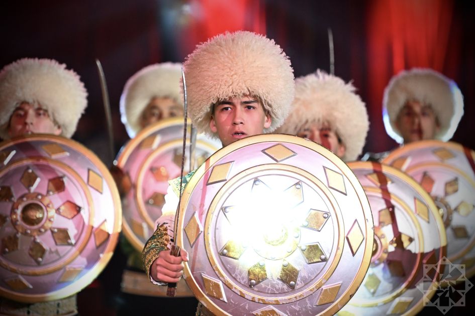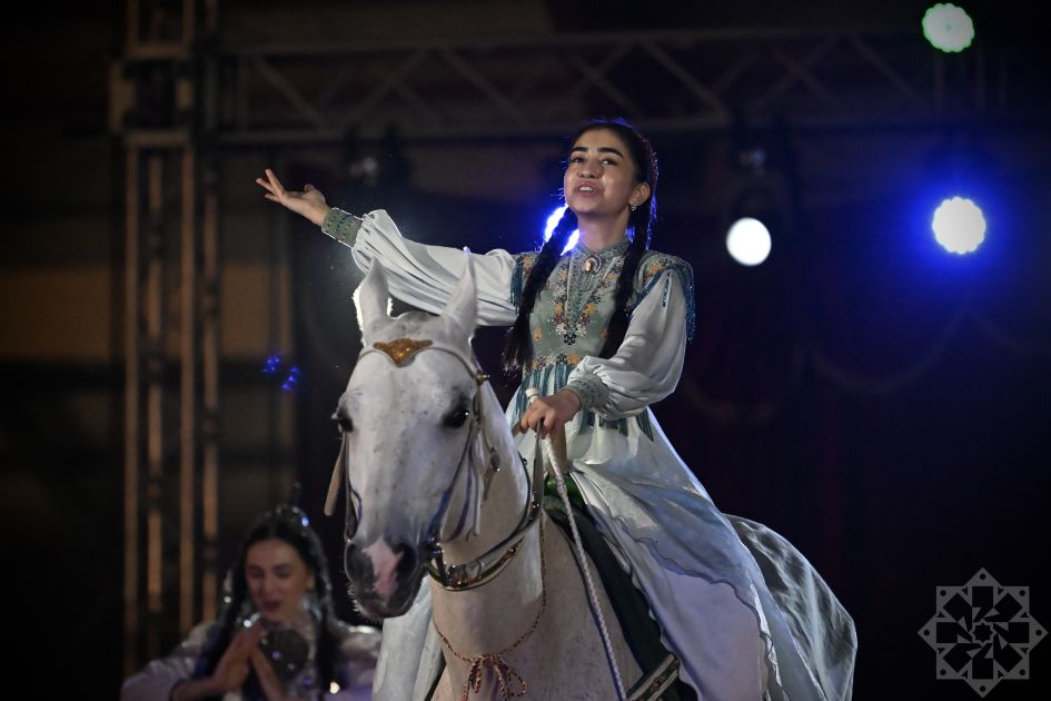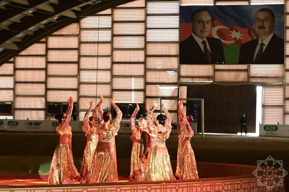 Azərbaycan və Türkmənistan bayraqlarının at üstündə səhnəyə gətirilməsi ilə proqram başa çatıb.