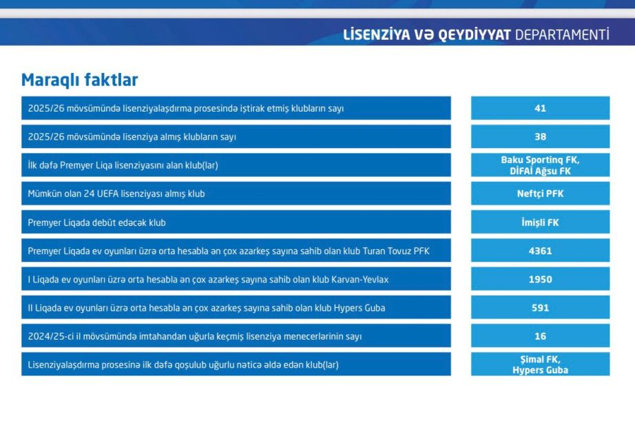 Azərbaycanda bu mövsüm 38 futbol klubu lisenziya alıb