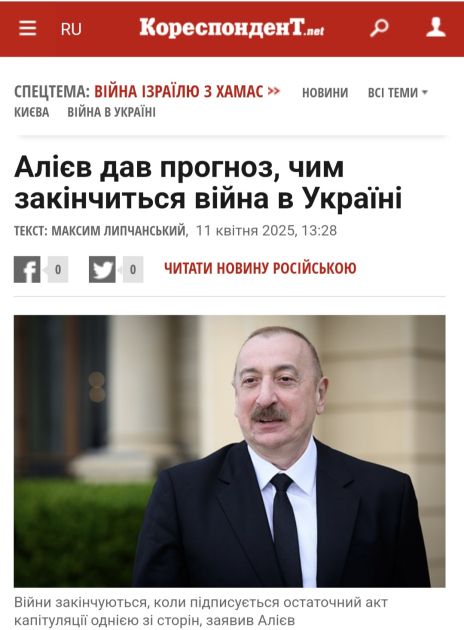 “Şəxsən mən realist olaraq, yaxın gələcəkdə Ukrayna ilə Rusiya arasında sülh üçün hər hansı perspektivi görmürəm”, - deyə məqalələrdə Prezident İlham Əliyevin sitatı qeyd olunub.