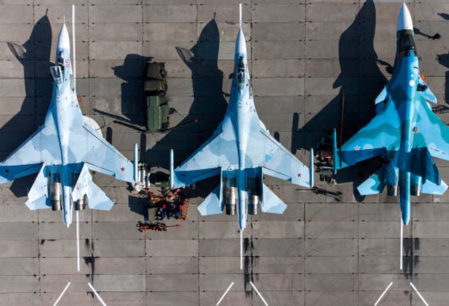 Borisoqlebsk aerodromunda Rusiya Aerokosmik Qüvvələrinin Su-25, Su-30, Su-34 və Su-35 təyyarələri var.