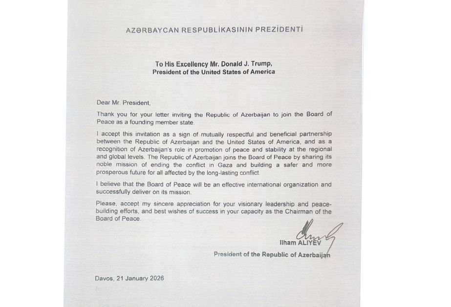 ABŞ Prezidenti Azərbaycan Respublikasını Sülh Şurasına təsisçi üzv dövlət qismində qoşulmağa dəvət edib