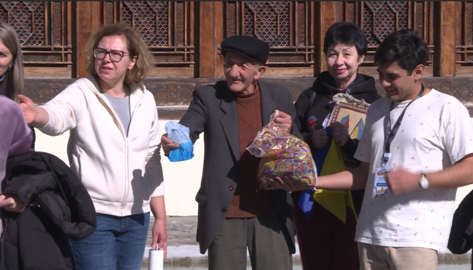 AZƏRTAC-ın bölgə müxbirinin məlumatına görə, ukraynalı uşaqları və onları müşayiət edən müəllim qrupunu bu dəfə Xan sarayının həyətində 44 günlük Vətən müharibəsindən hamının xeyirxah əməlləri ilə tanıdığı Hikmət Musayev, yəni, Hikmət baba da qarşılayıb. Bu maraqlı görüşü izləyənlər arasında əməkdaşlarımız da olub.