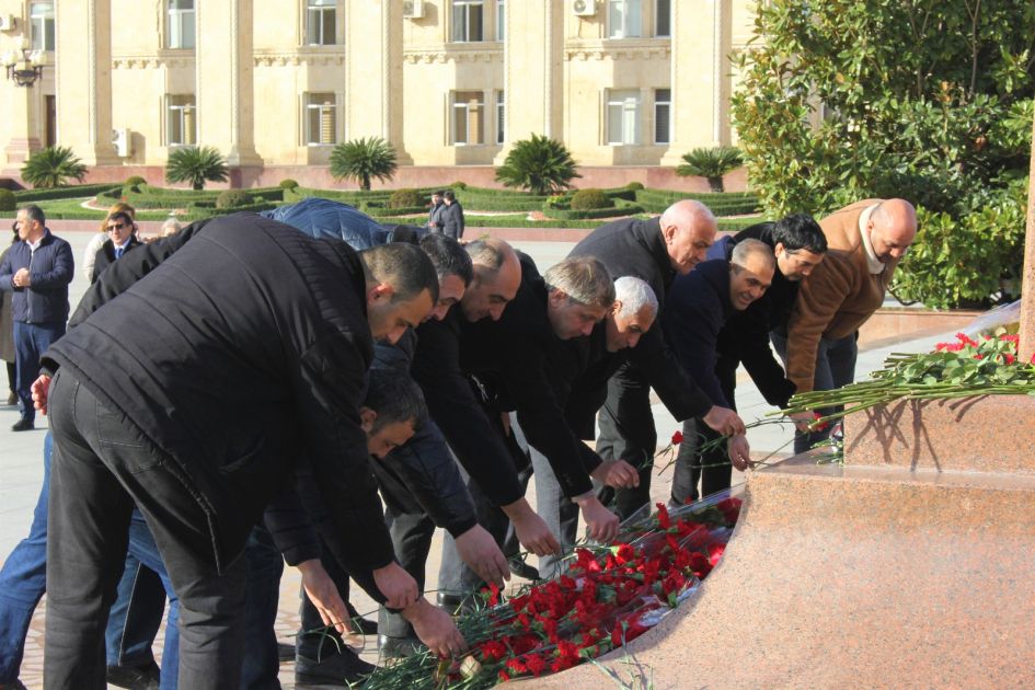 AZƏRTAC-ın bölgə müxbirinin verdiyi məlumata görə, Gəncə Şəhər İcra Hakimiyyətinin başçısı Niyazi Bayramov, Türkiyənin Gəncədəki baş konsulu Recep Öztop, Gürcüstanın Gəncədəki baş konsulu Qaxaber Abdaladze, YAP Gəncə şəhər təşkilatının sədri Bayram Aslanov, hüquq-mühafizə orqanlarının rəhbərləri, idarə və təşkilatların kollektivləri Ümummilli Lider Heydər Əliyevin Gəncənin baş meydanındakı abidəsini ziyarət edib, önünə tər gül dəstələri düzüb, xatirəsinə dərin hörmət ifadə ediblər.