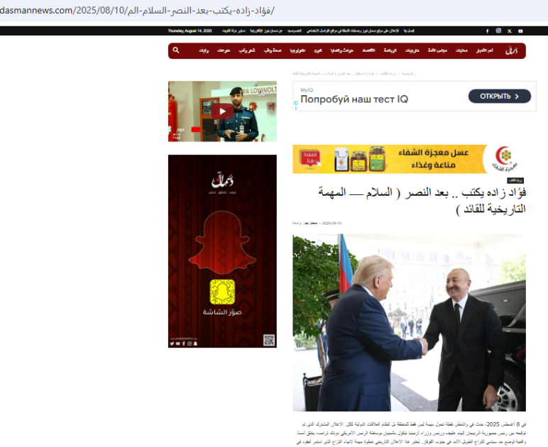 Yazıda, həmçinin bildirilir ki, bu sülh sənədi yalnız silahlı münaqişənin sonlanması deyil, həm də yeni iqtisadi və sosial inteqrasiya prosesinin başlanğıcı ola bilər. Azərbaycan üçün bu, işğaldan azad edilmiş ərazilərdə bərpa və reinteqrasiya proseslərinin sürətlənməsi, eyni zamanda, regional tranzit imkanlarının genişlənməsi deməkdir. Ermənistan üçün isə bu, uzun illər davam edən siyasi və iqtisadi izolyasiyadan çıxmaq üçün tarixi bir fürsətdir.