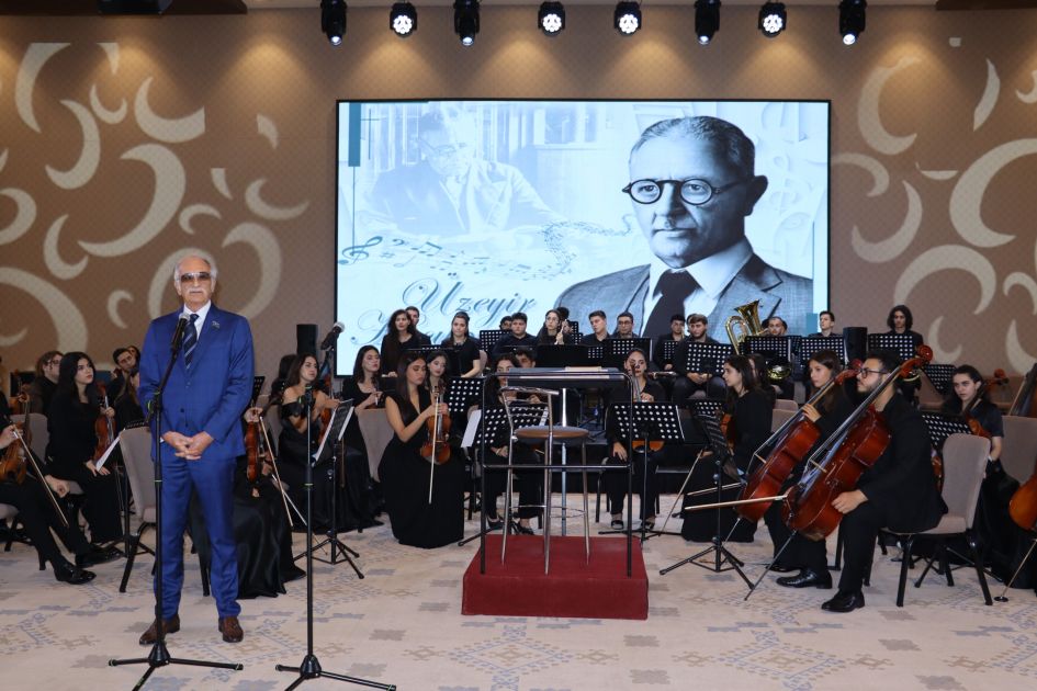 Orkestrin dirijorluğunu Ramiz Məlikaslanov, bədii rəhbərliyini Xalq artisti, professor Fərhad Bədəlbəyli həyata keçirib. Tədbirdə Üzeyir Hacıbəylinin ölməz əsərləri ilə yanaşı, dünya musiqi xəzinəsinin incilərindən F.Mendelsonun simfoniyası da səslənib.