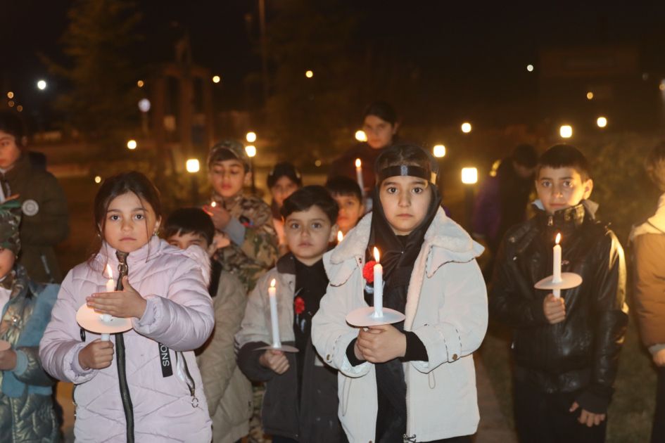 Xankəndi şəhərində, Ağdərə və Xocalı rayonlarında Bərpa, Tikinti və İdarəetmə Xidmətinin ictimaiyyətlə əlaqələr şöbəsindən AZƏRTAC-ın bölgə müxbirinə bildirilib ki, Xocalı şəhər 1 nömrəli tam orta məktəbin şagirdlərinin iştirakı ilə baş tutan anım aksiyası zamanı faciə qurbanları yad edilib, soyqırımı zamanı həyatını itirmiş 63 uşağın xatirəsinə 63 şam yandırılıb. Şagirdlər əllərində şam heç vaxt böyüməyən 63 uşağın adını səsləndirərək, onları doğma torpaqda – Xocalıda anıblar.