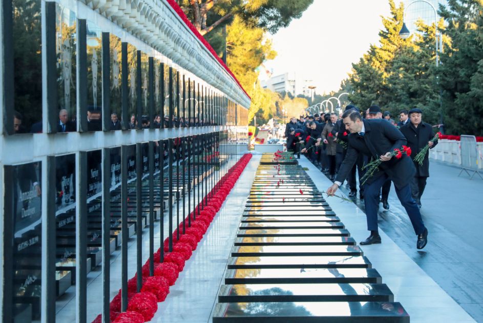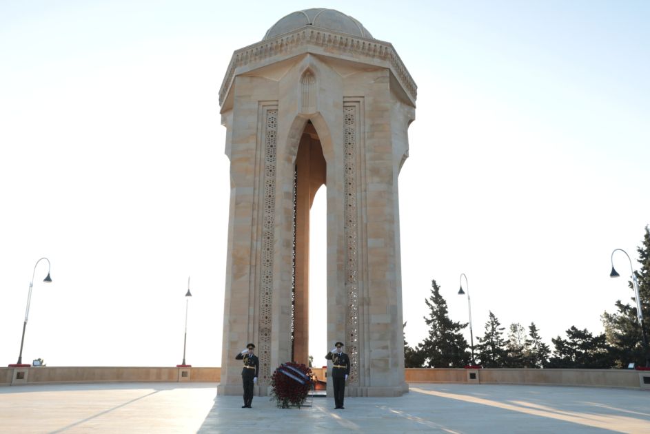 AZƏRTAC xəbər verir ki, Azərbaycanın müstəqilliyi, suverenliyi və ərazi bütövlüyü uğrunda canlarından keçmiş Vətən övladlarının müqəddəs xatirəsi dərin ehtiramla yad edilib, məzarları üzərinə qərənfillər düzülüb. XRİTDX adından “Əbədi məşəl” abidə-kompleksinin önünə əklil qoyulub.