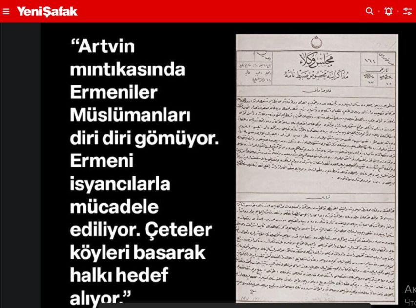 “Yeni Şafak” qəzeti: Türkiyə parlamentinin arxivləri ermənilərin Anadoludakı vəhşiliklərinə işıq salır